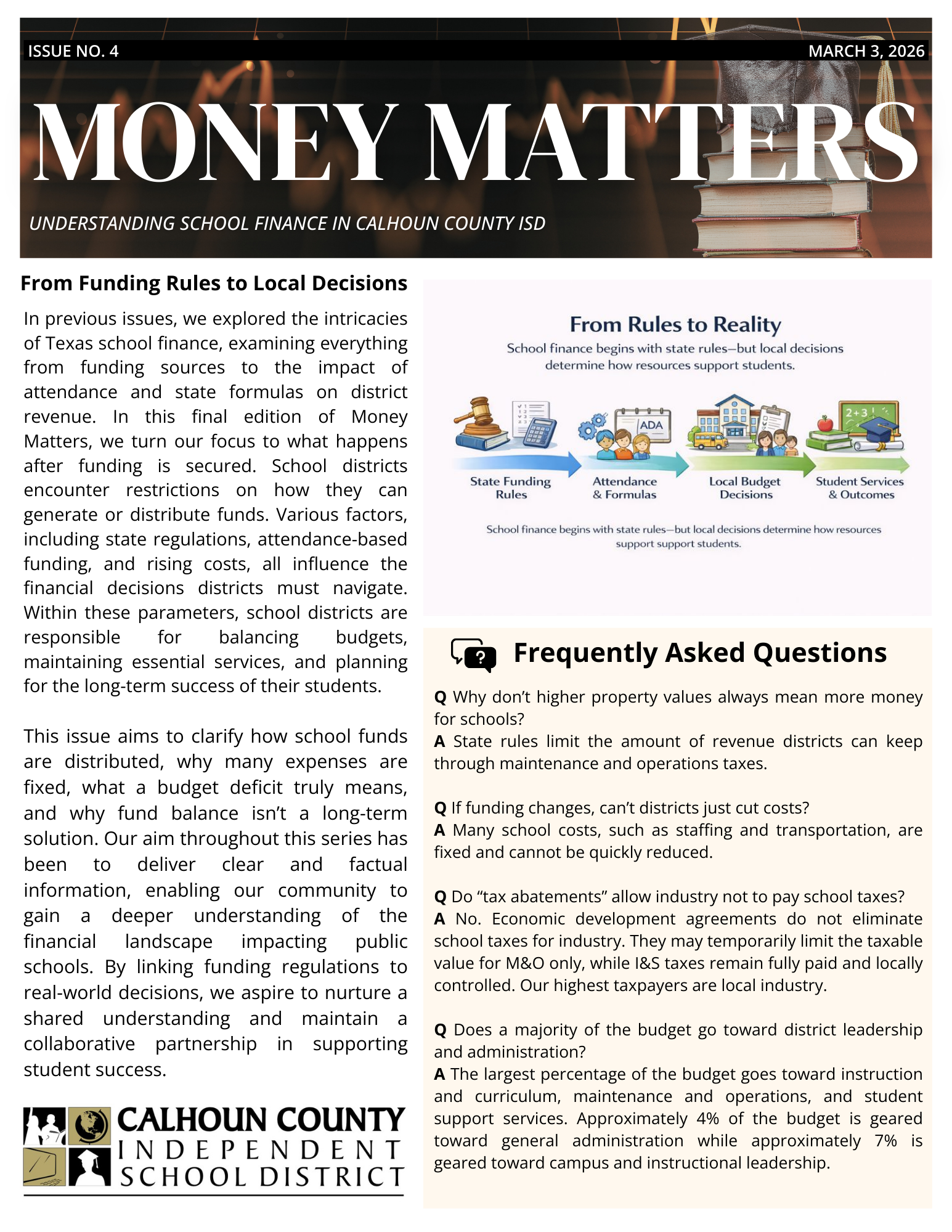 In this final edition of Money Matters, we turn our focus to what happens after funding is secured. This issue aims to clarify how school funds are distributed, why many expenses are fixed, what a ...